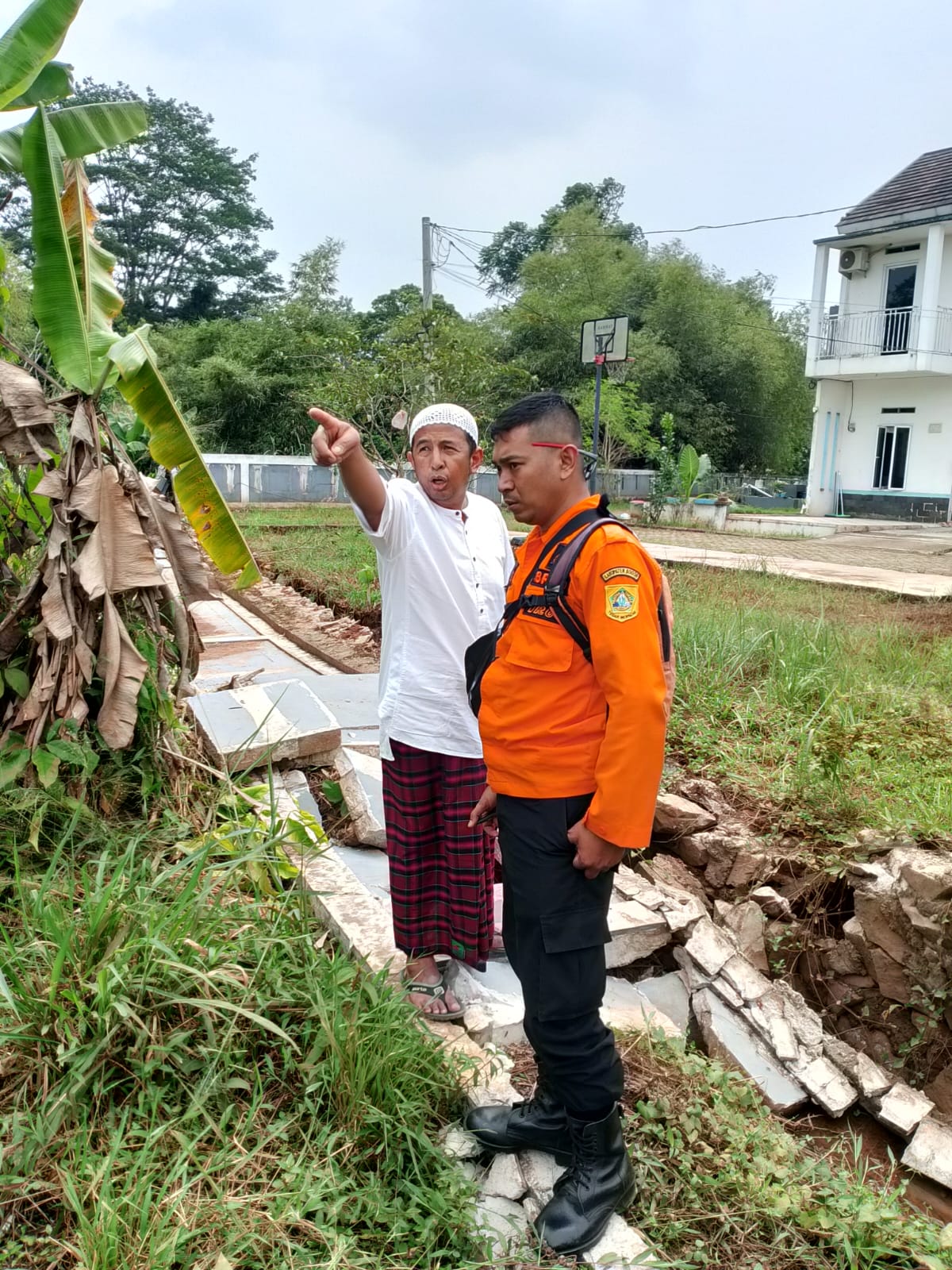 Kronologi dan Keterangan Kerusakan : Dikarenakan hujan deras yang cukup lama sehingga mengakibatkan banjir dan meluapnya aliran sungai di wilayah tersebut dengan ketinggian kurang lebih 1 Meter sehingga menyebabkan tanggul pembatas sungai jebol